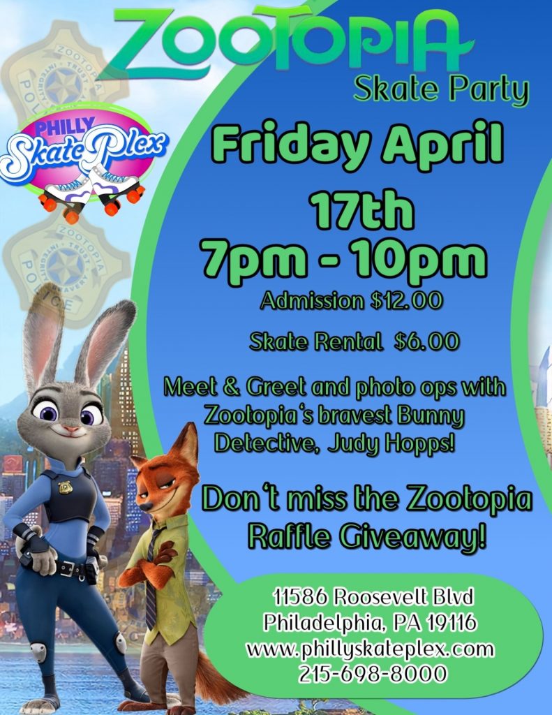 Join us for a wild night of fun at our Zootopia Skate on Friday, April 17th from 7 PM to 10 PM! Admission is $12.00 and skate rental is $6.00. Get ready to roll into adventure and don’t miss your chance to meet Zootopia’s bravest bunny, Judy Hopps, with special meet-and-greet photo opportunities throughout the night. It’s going to be a hopping good time for everyone! 🐰🎉