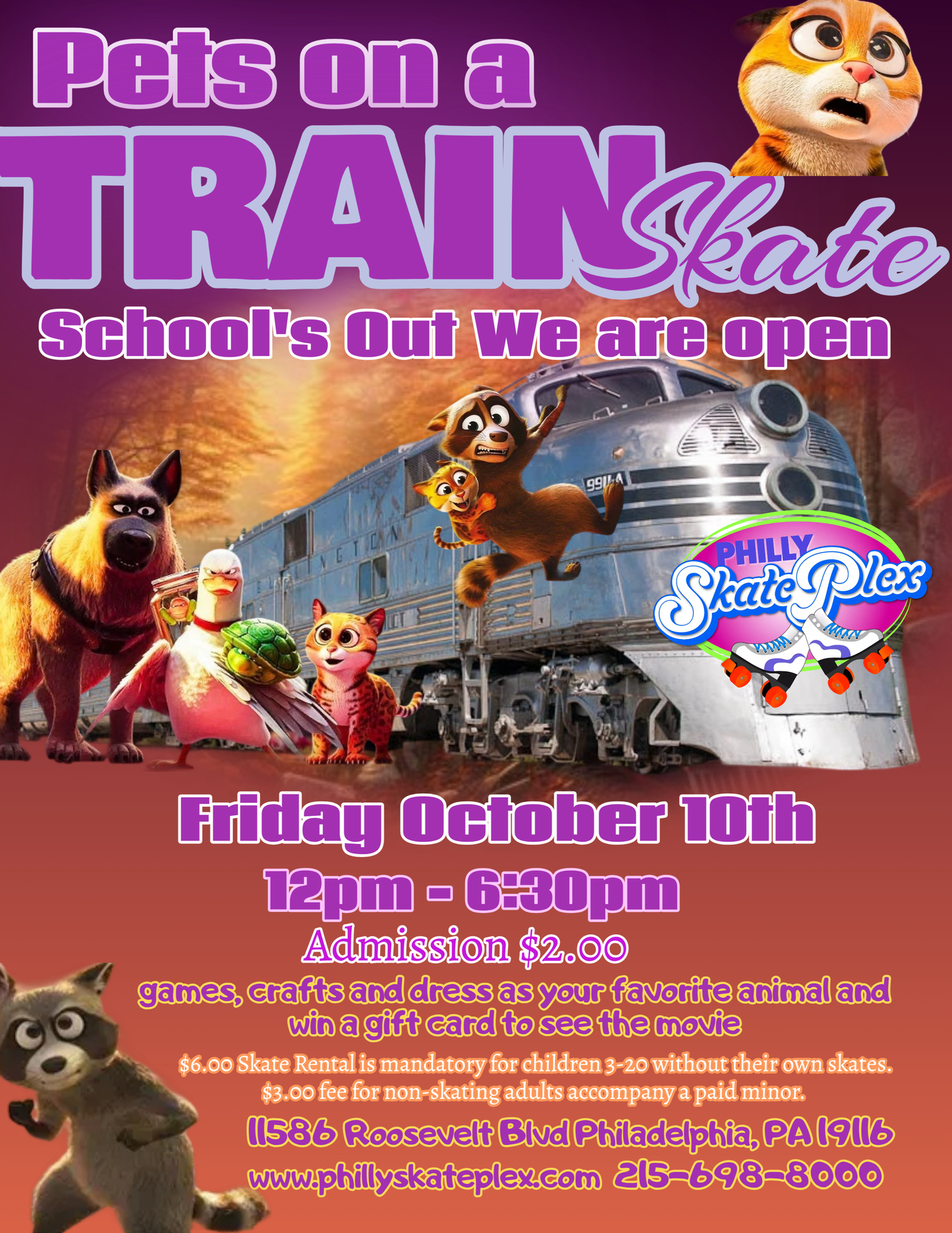 🐾🚂 Pets on the Train Skate Day! 🚂🐾School’s out, so come join us at Philly SkatePlex on Friday, October 10th from 12:00pm to 6:30pm for a fun-filled afternoon on wheels!...