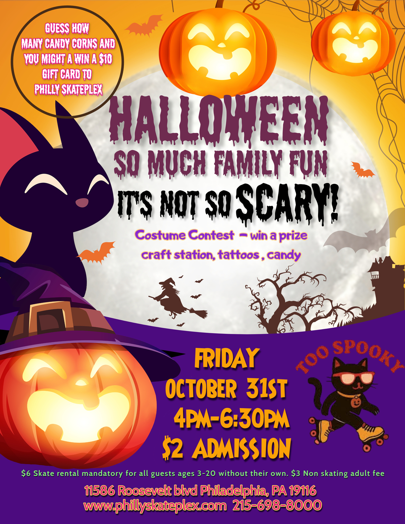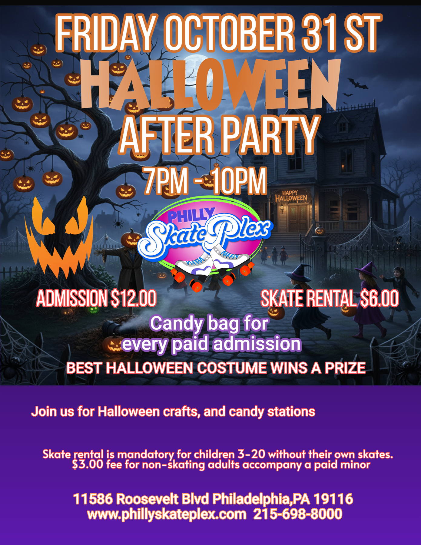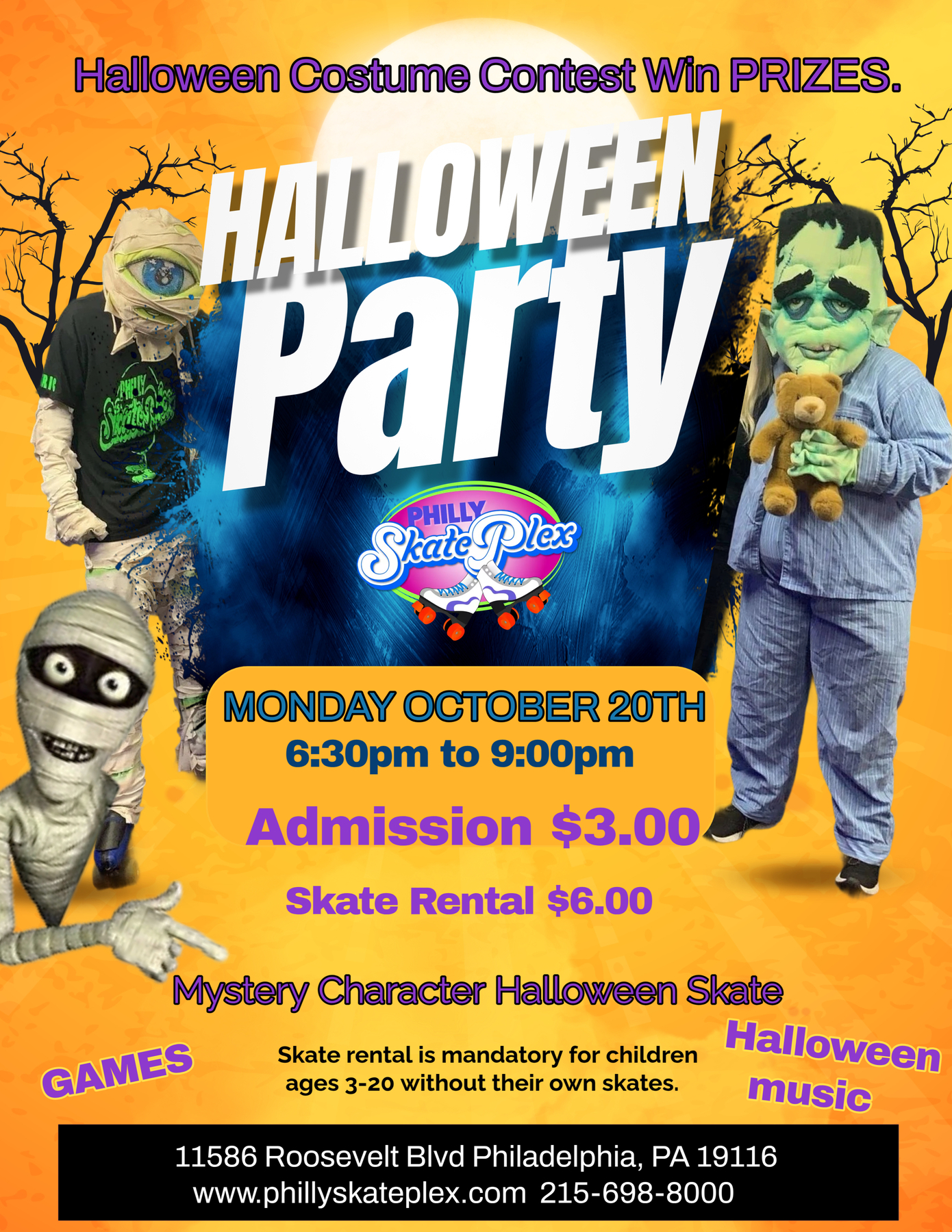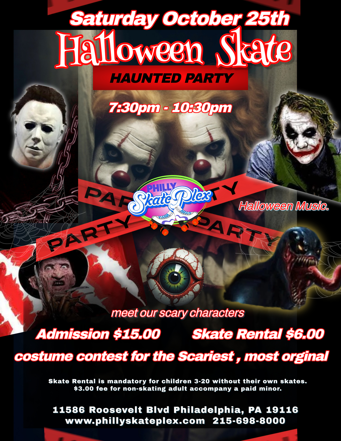 Get ready for a spooktacular night at Philly SkatePlex! Join us on Saturday, October 25th for our Halloween Skate Haunted Party from 7:30 p.m. to 10:30 p.m.. Admission is $15,...
