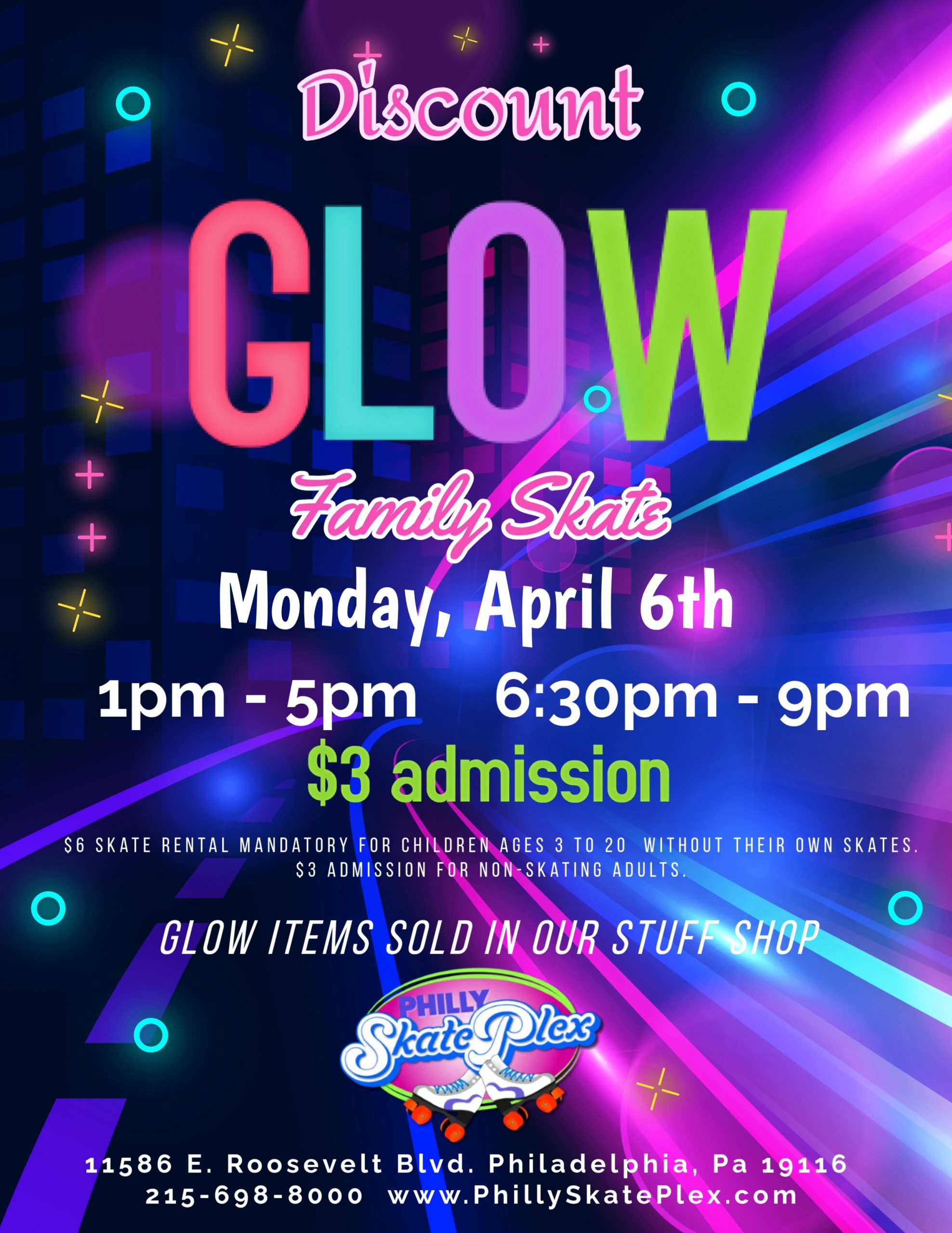 ✨ Discount Glow Night – Family Skate! ✨ Join us on Monday, April 6th for our Discount Glow Night Family Skate! Roll under the lights and enjoy a fun day...