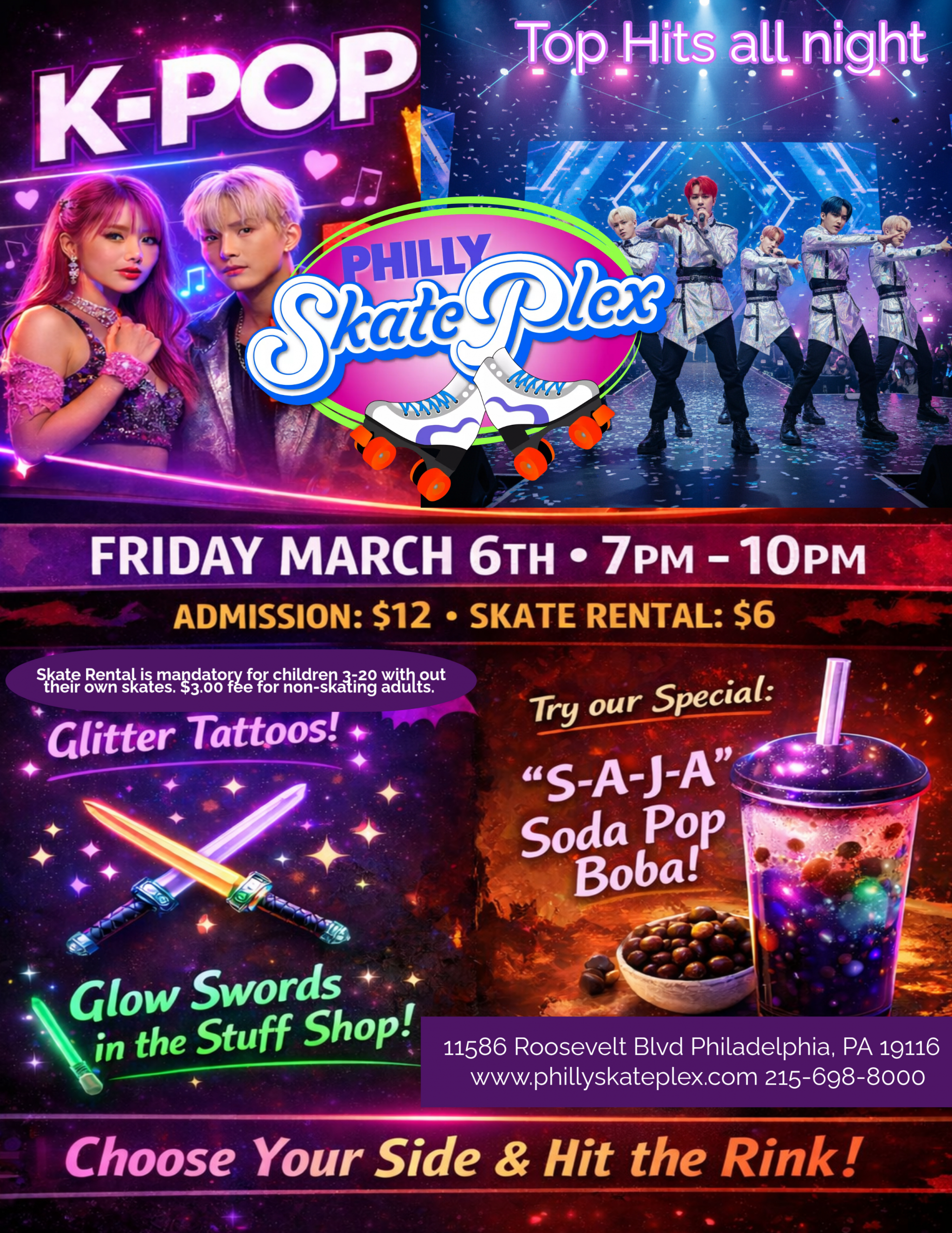 Friday, March 6th from 7PM to 10PM, join us for our K-Pop Skate Night! 🎶✨ Roll into the weekend with all the top K-Pop hits playing all night long and...